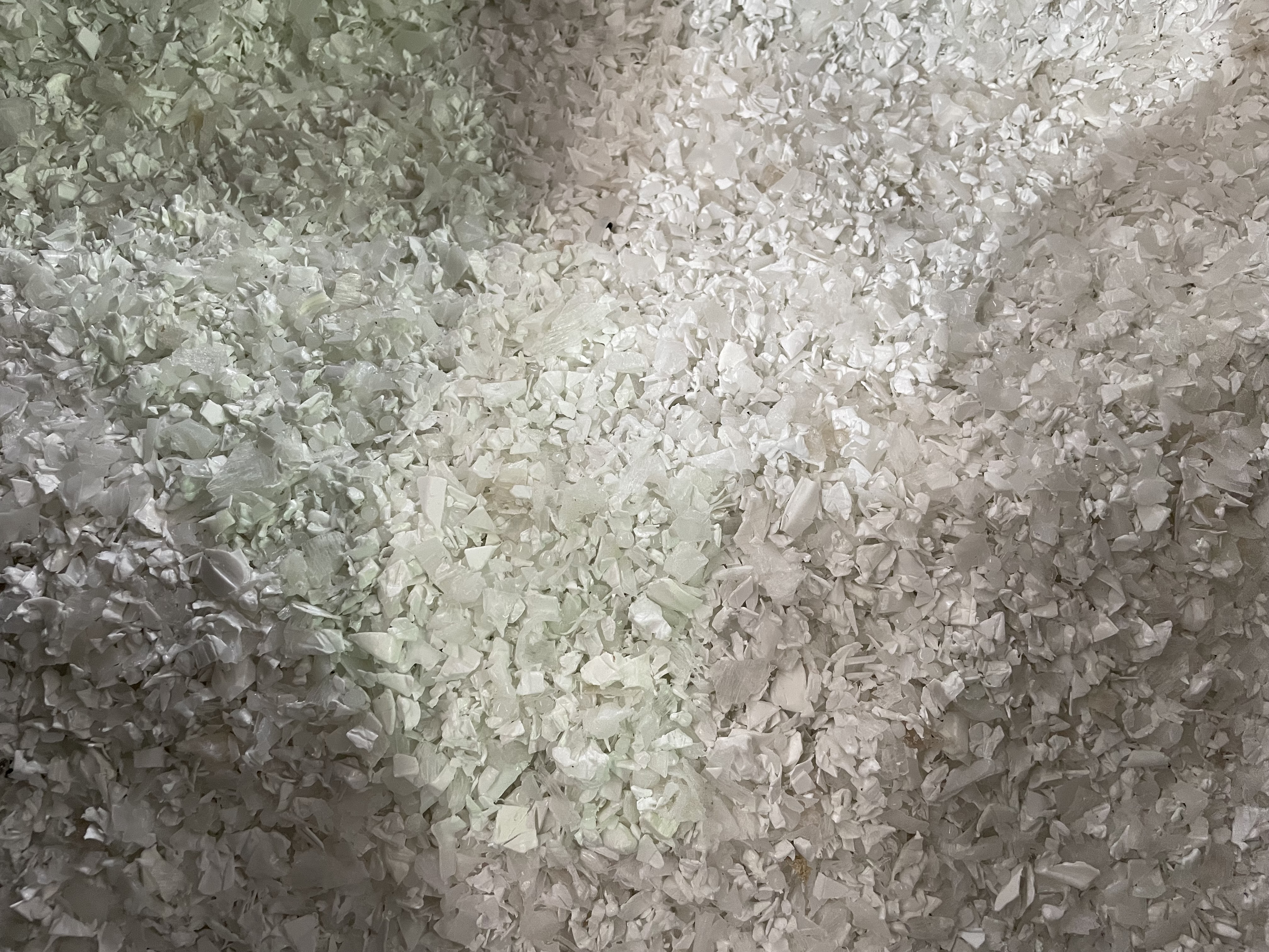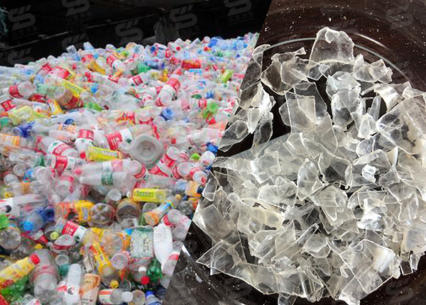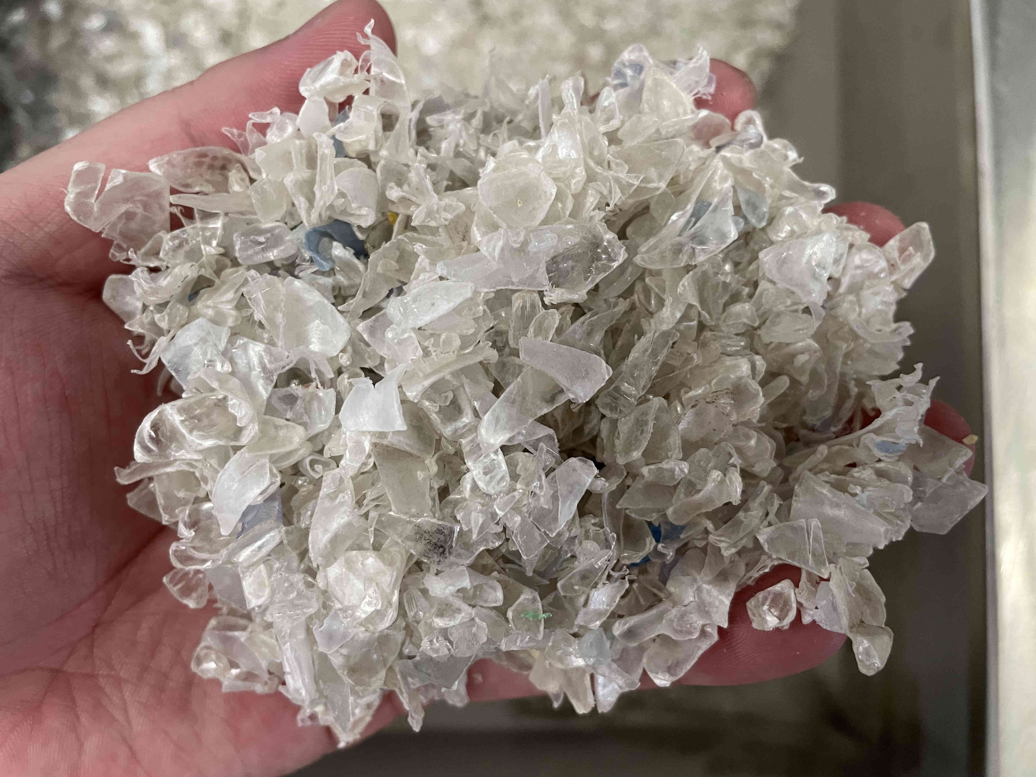 廢塑料瓶廢瓶清洗後的產物產品描述(shù):PET瓶回收清(qīng)洗線應(yīng)用於PET廢瓶或片材(cái)回收領域(yù)。PET瓶清洗(xǐ)線通過脫標、分選、粉碎、清洗和幹燥過程,廢瓶將成為瓶片。清洗後的瓶片廣泛用於塑料和化纖工業,如板材和(hé)型材生產、化纖生產。 適用材料:日雜塑料,PET瓶,PET牛奶片,HDPE瓶(píng),機油瓶和混合塑料(liào)等。 技術特點:適合各類(lèi)混(hún)合塑料的清洗和分離,或者含腐蝕物質的塑料加工處理;采用循環水,保證清洗效果的同時控製水流(liú)量和蒸發水量;粉碎係統采用耐磨設計,確保